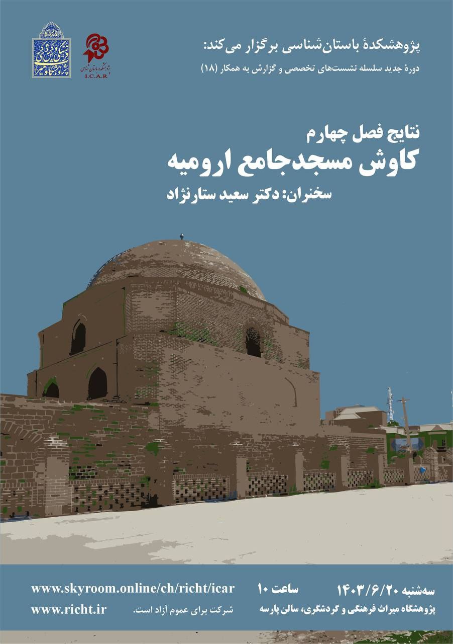 ? نشست کاوش باستانشناسی مسجد جامع ارومیه با سخنرانی سعید ستارنژاد سهشنبه ۲۰ شهریور ۱۴۰۳ در پژوهشگاه میراث فرهنگی و گردشگری برگزار میشود.