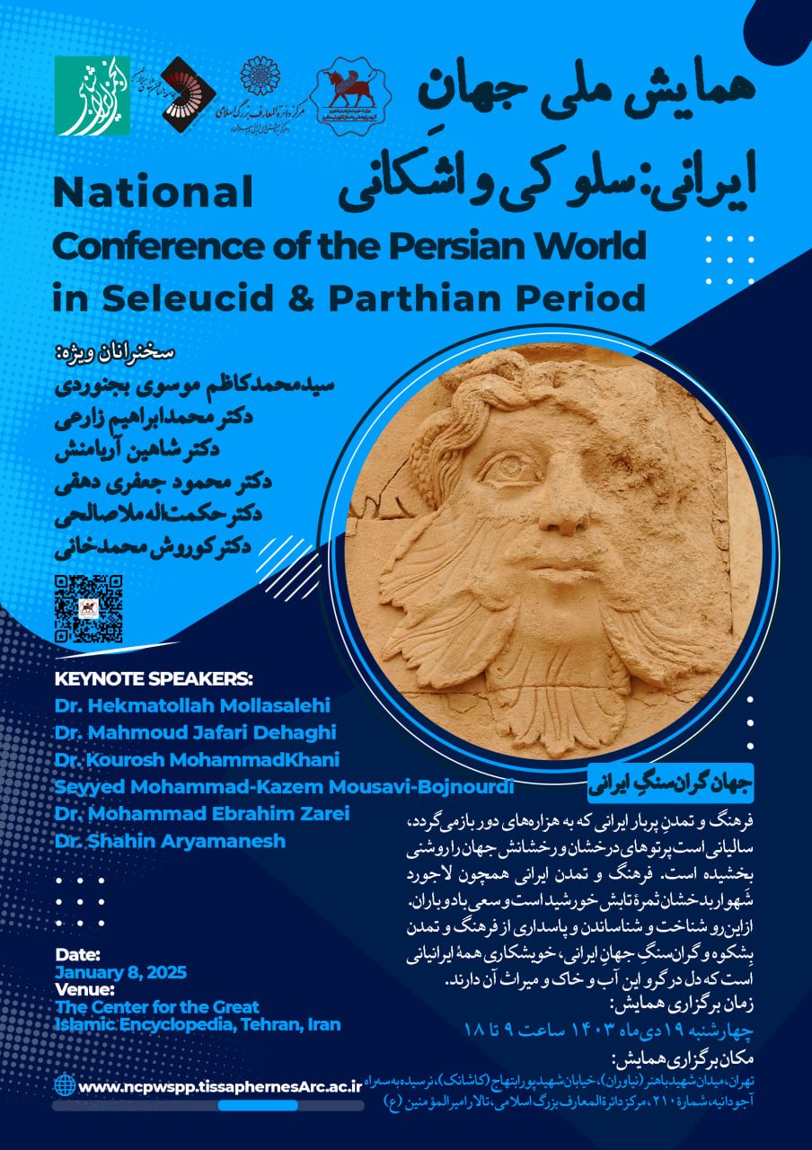 ? گروه پژوهشی باستانکاوی تیسافرن و مرکز دائرةالمعارف بزرگ اسلامی و جامعۀ باستانشناسی ایران و انجمن ایرانشناسی ایران «همایش ملی جهانِ ایرانی: سلوکی و اشکانی» را به دبیری علمی دکتر شاهین آریامنش و دکتر هوشنگ رستمی، چهارشنبه ۱۹ دیماه ۱۴۰۳ در مرکز دائرةالمعارف بزرگ اسلامی برگزار میکنند.