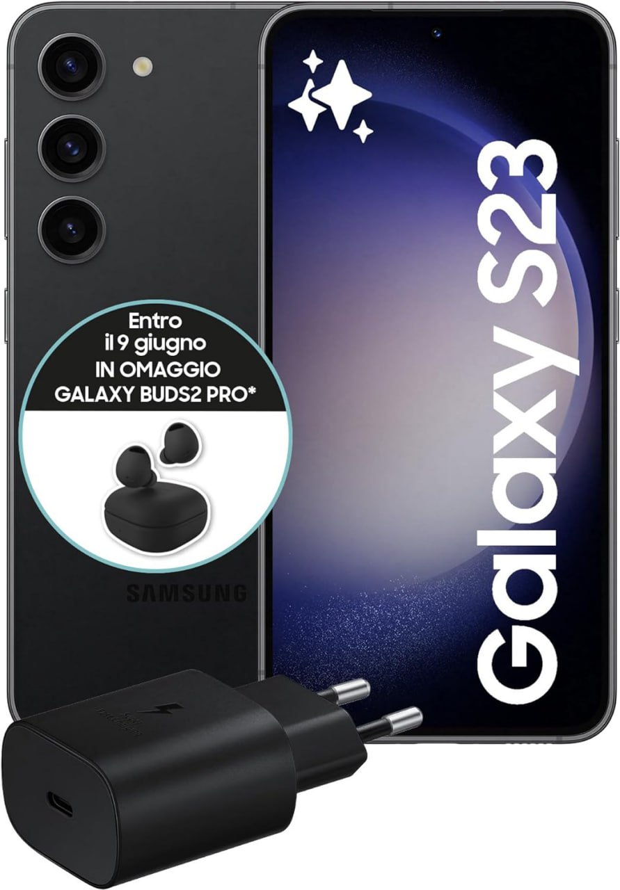 Samsung Galaxy S23 Smartphone AI, Caricatore incluso, Display 6.1'' Dynamic AMOLED 2X, Fotocamera 50MP, RAM 8GB, 128 GB, 3.900 mAh, Phantom Black Versione italiana